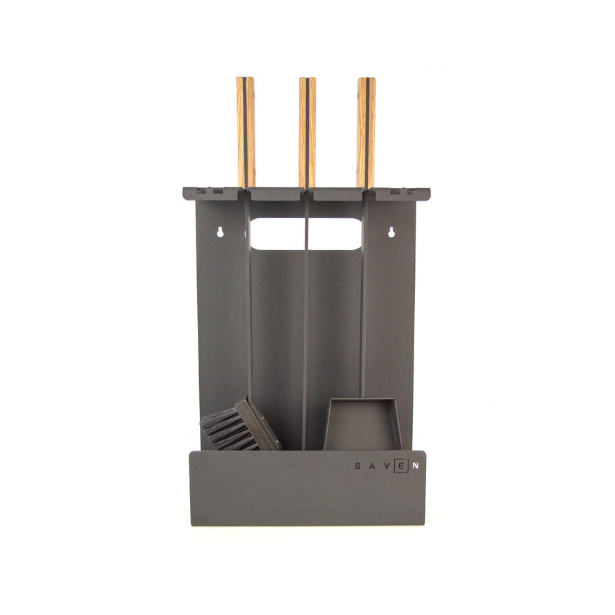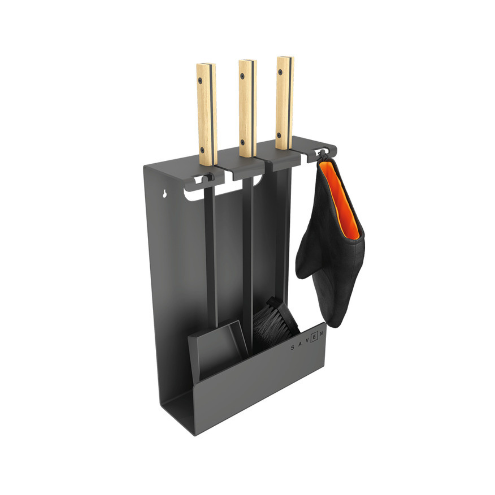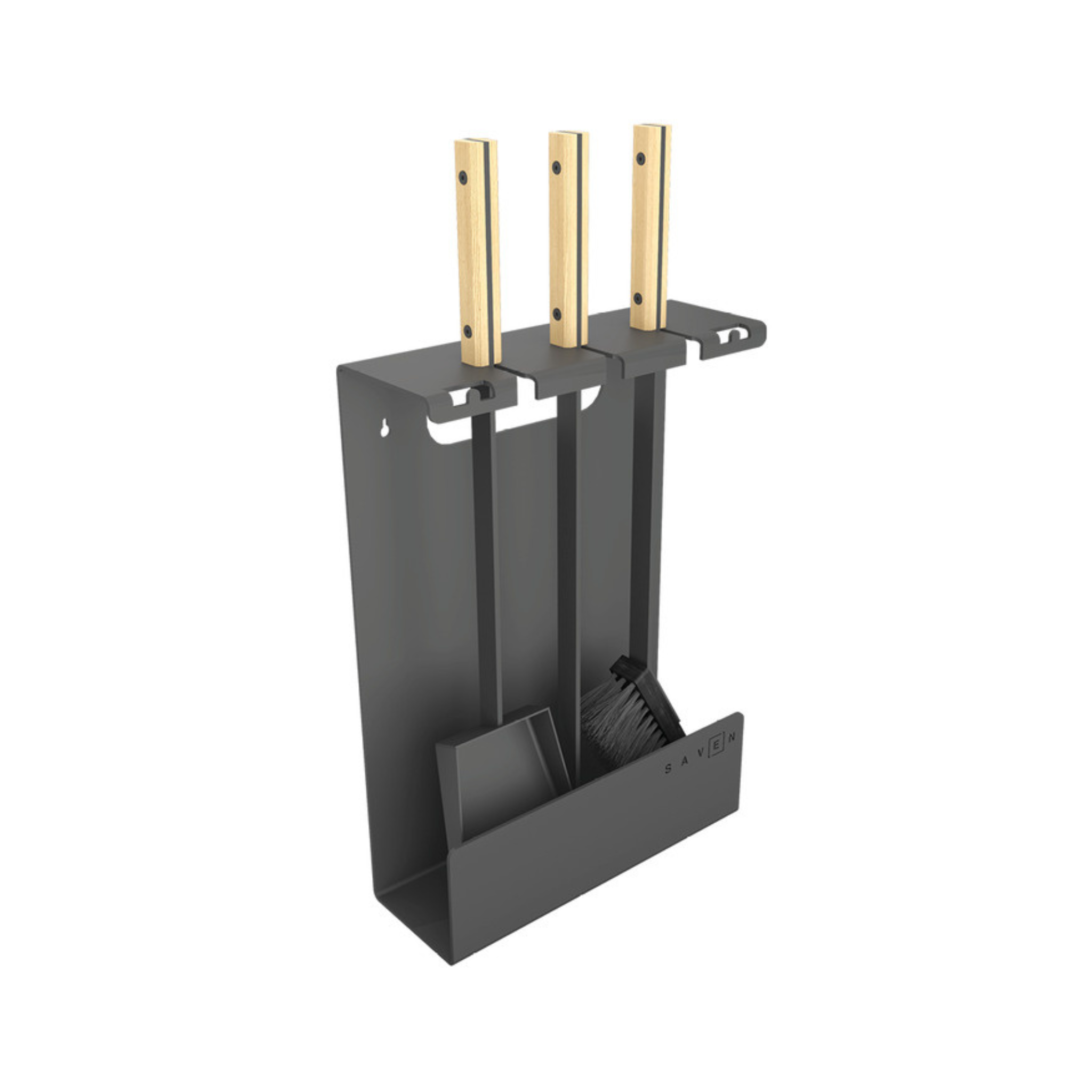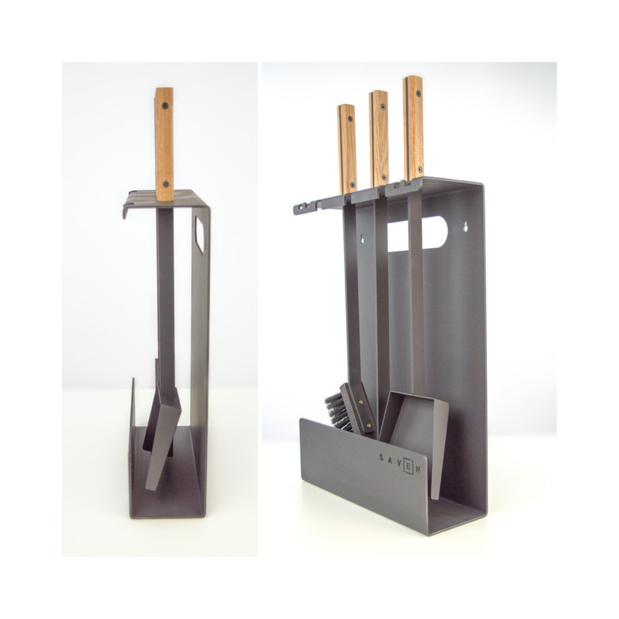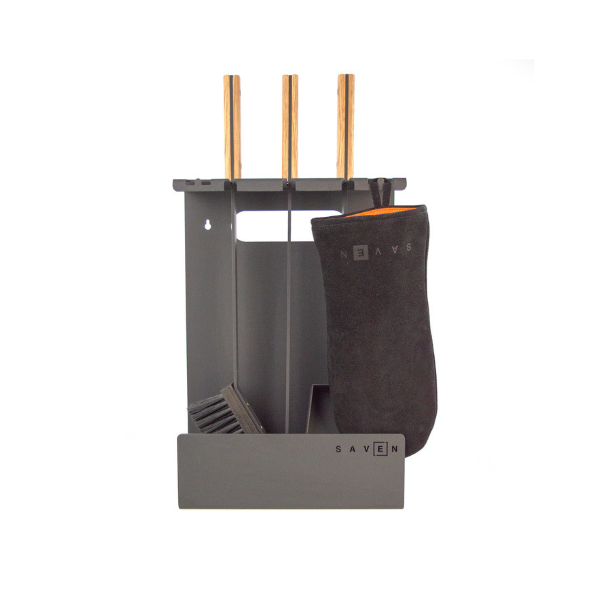 „SAVEN Set 3 L White“ – tai solidus, estetiškas ir funkcionalus židinio įrankių rinkinys, skirtas intensyvesnei eksploatacijai ar didesniems židiniams. Pagamintas iš plieno su šviesiomis medinėmis rankenomis, šis rinkinys derės prie įvairių interjerų – nuo klasikinių iki modernių stilistikų. Komplekte yra trys pagrindiniai įrankiai: šepetys, samtelis ir žarsteklis, o konstrukcija su stovu leidžia juos laikyti tvarkingai, kad visi įrankiai būtų lengvai pasiekiami.