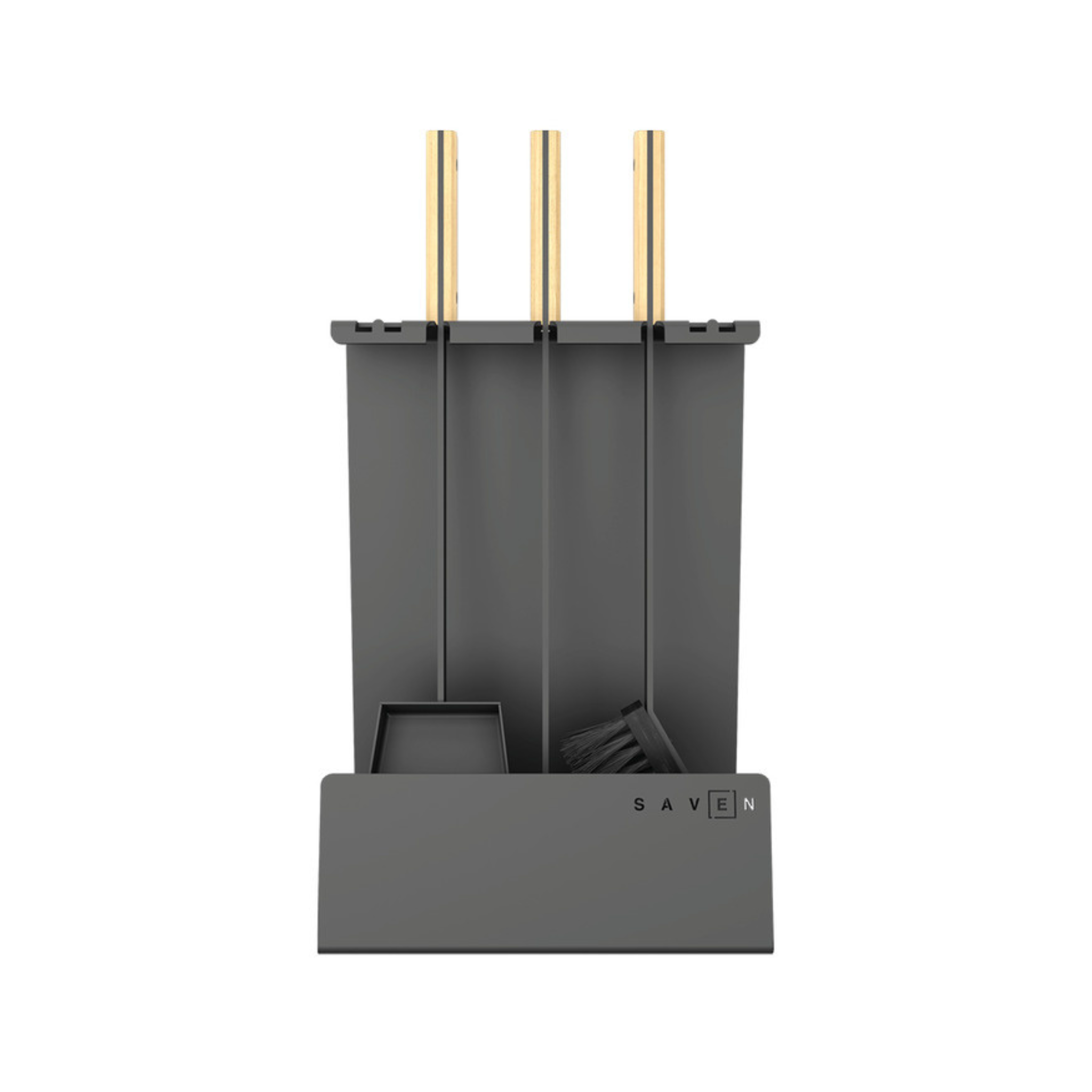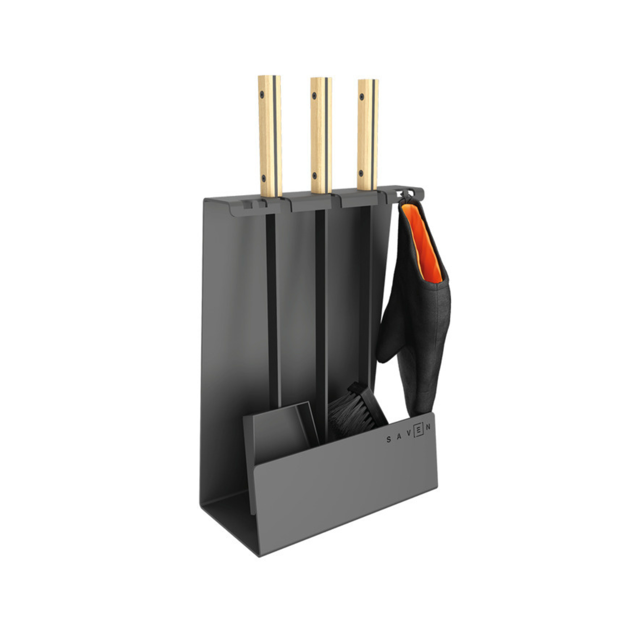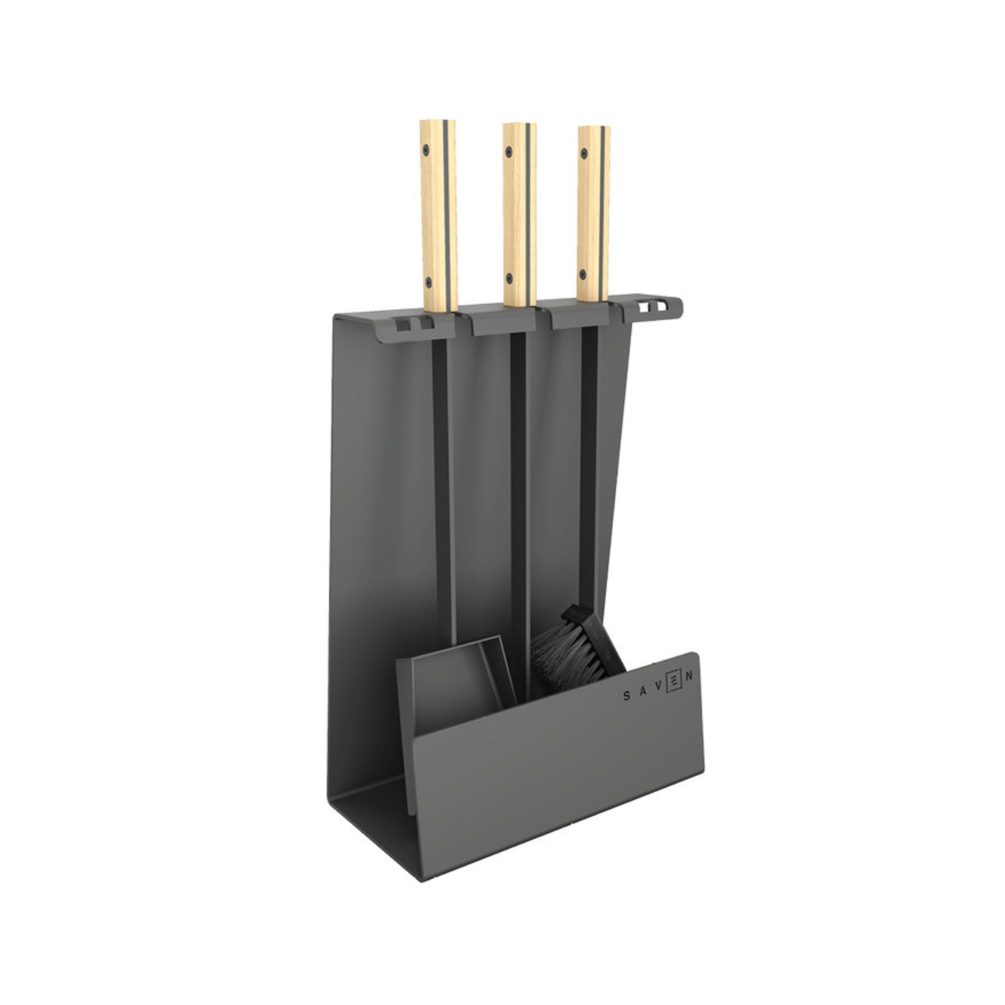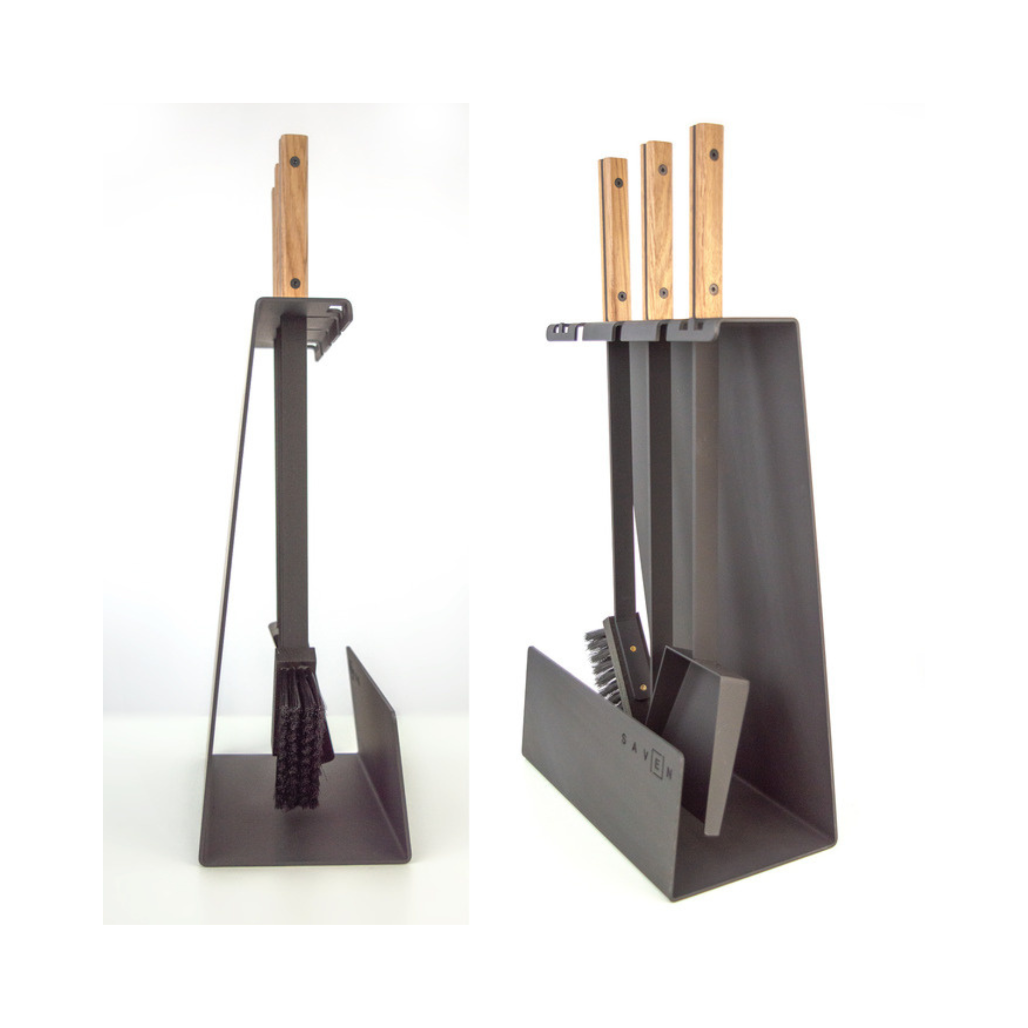 „SAVEN Set 4 L White“ – tai solidus, estetiškas ir funkcionalus židinio įrankių rinkinys, skirtas intensyvesnei eksploatacijai ar didesniems židiniams. Pagamintas iš plieno su šviesiomis medinėmis rankenomis, šis rinkinys derės prie įvairių interjerų – nuo klasikinių iki modernių stilistikų. Komplekte yra trys pagrindiniai įrankiai: šepetys, samtelis ir žarsteklis, o konstrukcija su stovu leidžia juos laikyti tvarkingai, kad visi įrankiai būtų lengvai pasiekiami.