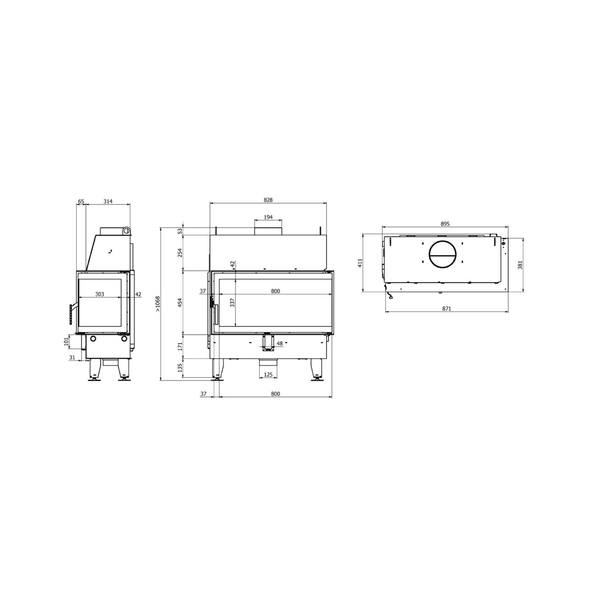 Kampinė židinio kapsulė Defro Home Impuls LA BP atidaromomis durelėmis.