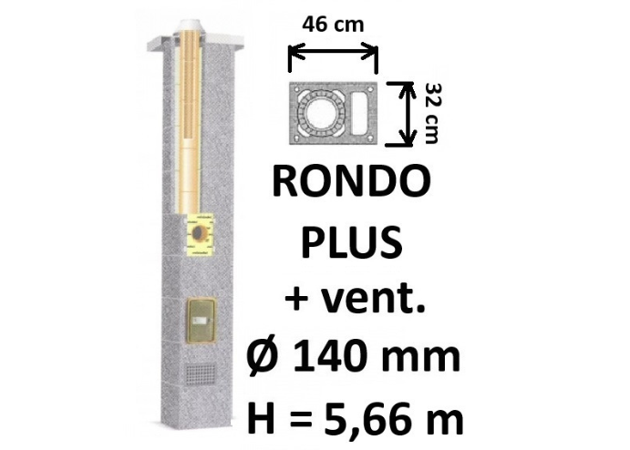 Kamino komplektas SCHIEDEL RONDO PLUS Ø140 mm su ventiliaciniu kanalu B, C, D klasės namams. Keramikinis dūmtraukis