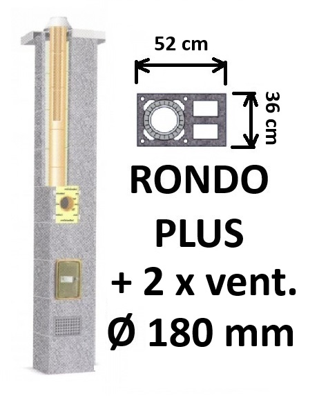 Schiedel Rondo Plus Ø180 mm – keramikinis dūmtraukis su dviem integruotais ventiliacijos kanalais, skirtas B, C ir D energinės klasės pastatams.