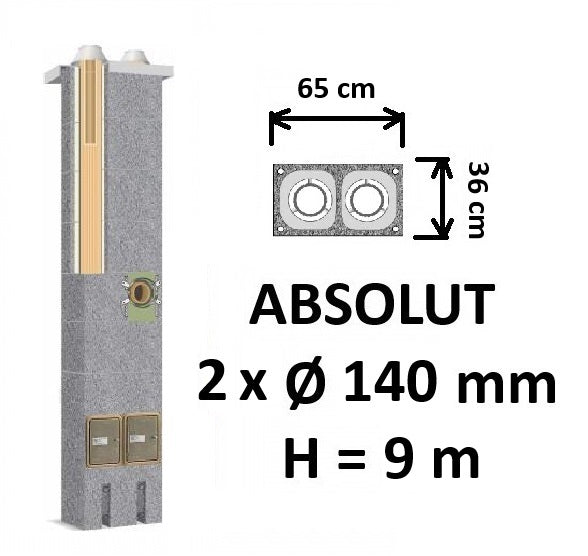Dvigubo kamino komplektas Schiedel Absolut Ø140+140 mm. Dvigubas keramikinis kaminas.