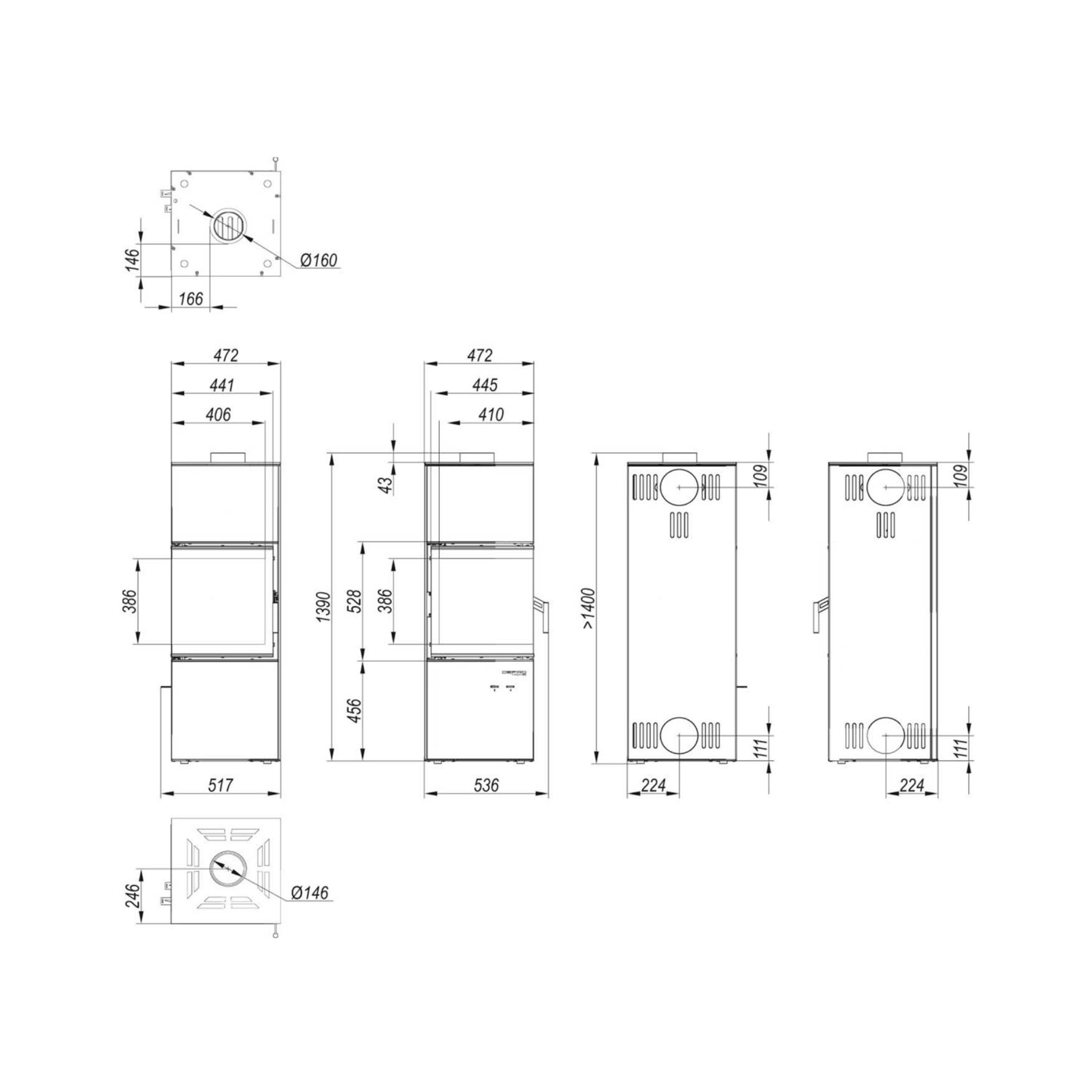 Dūmtraukio skersmuo: 150 mm