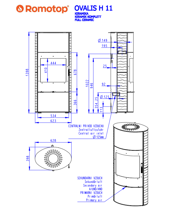 Romotop OVALIS H CERAMIC WAVE lenktas apvalus akumuliacinis židinys – apvali akumuliacinė krosnelė lenktu stiklu su keramikos apdaila / pasirink spalvą