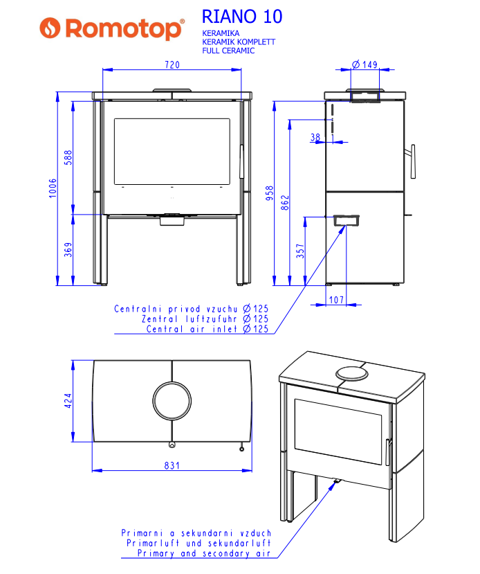 Židinys – krosnelė Romotop RIANO CERAMIC su keramika. Pasirink apdailos spalvą.