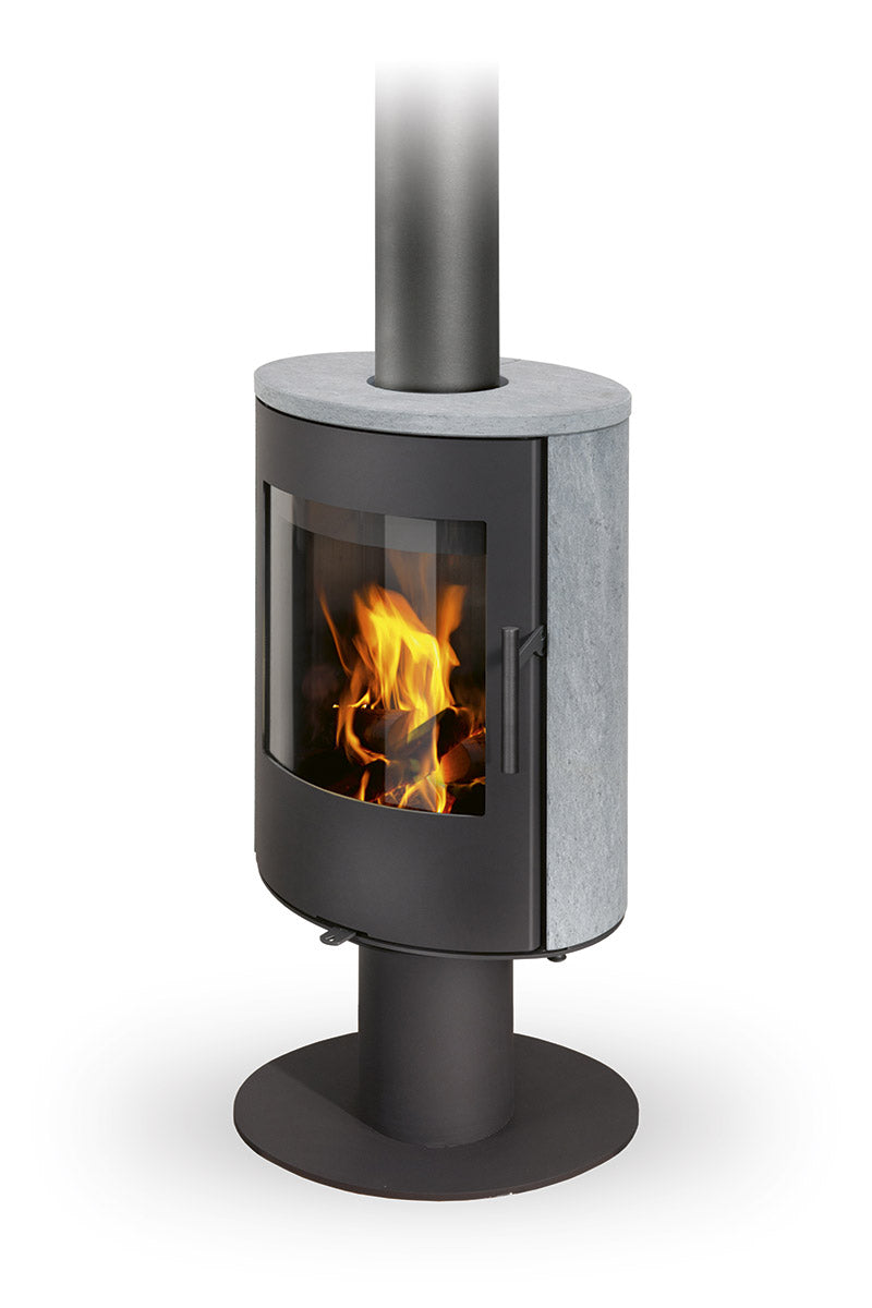 Romotop EVORA T SERPENTINE lenktas apvalus židinys - apvali krosnelė su akmens apdaila