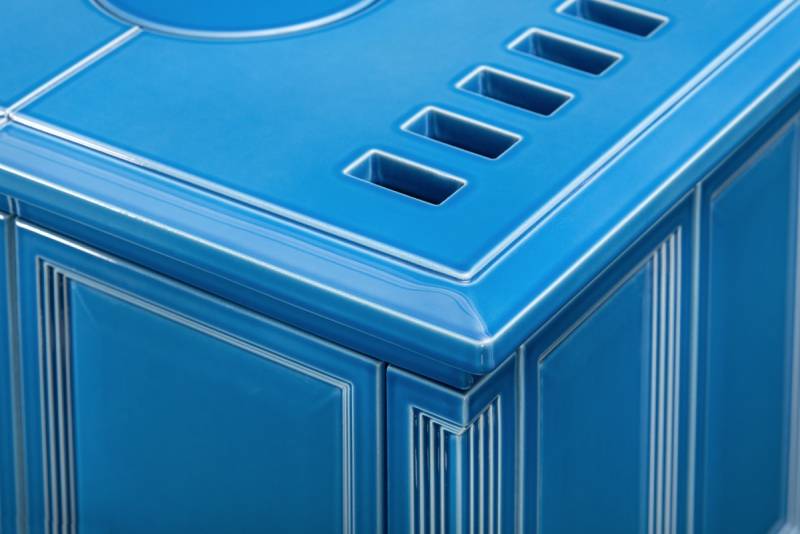 Romotop GREMIO 1 akumuliacinis židinys – akumuliacinė krosnelė su kokliais. Keramikos apdaila / pasirink spalvą