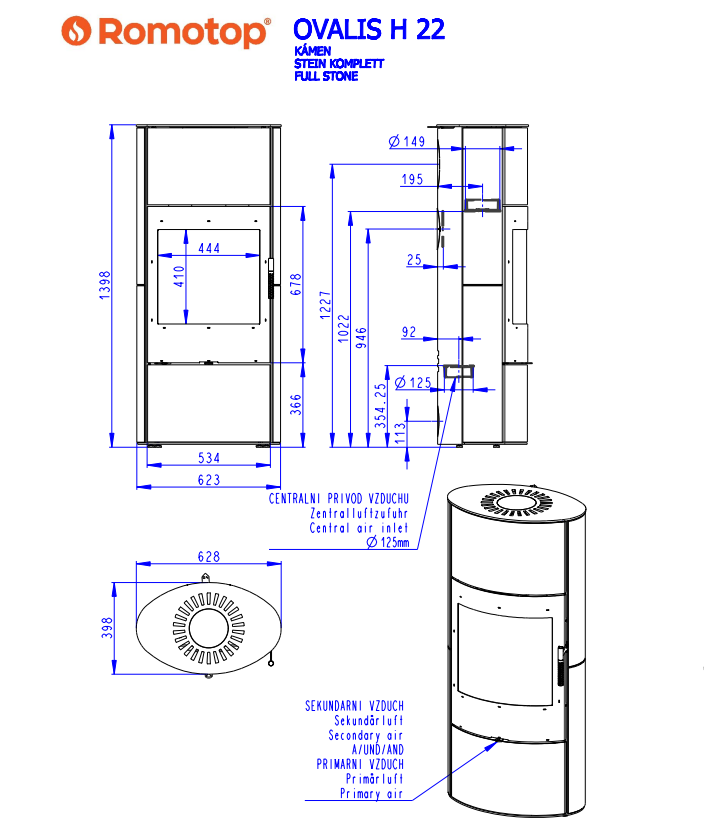 Romotop OVALIS H SERPENTINE lenktas apvalus akumuliacinis židinys – apvali akumuliacinė krosnelė su akmens apdaila