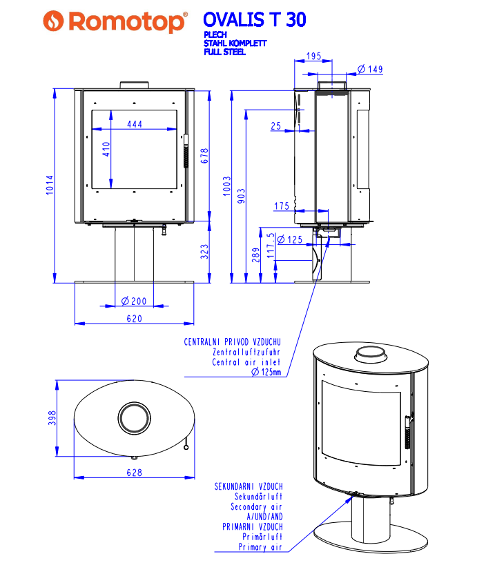 Romotop OVALIS T STEEL lenktas apvalus židinys - apvali krosnelė