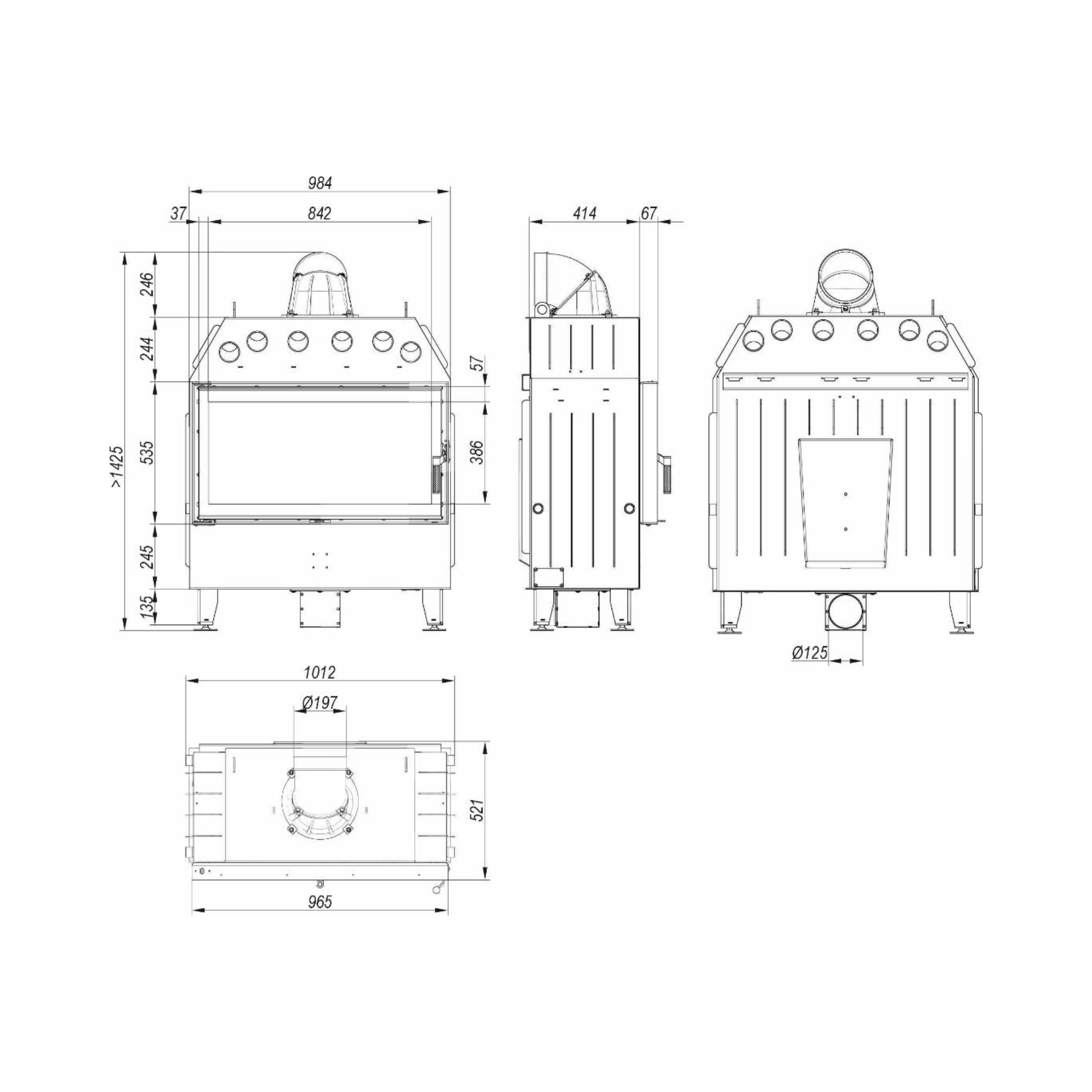 Defro Home INTRA L židinys, 16 kW – židinio kapsulė su tiesiu stiklu, į šoną atidaromomis durelėmis