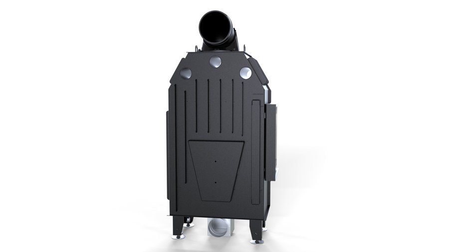 - Juodas metalinis apdailinis rėmelis aplink pakurą