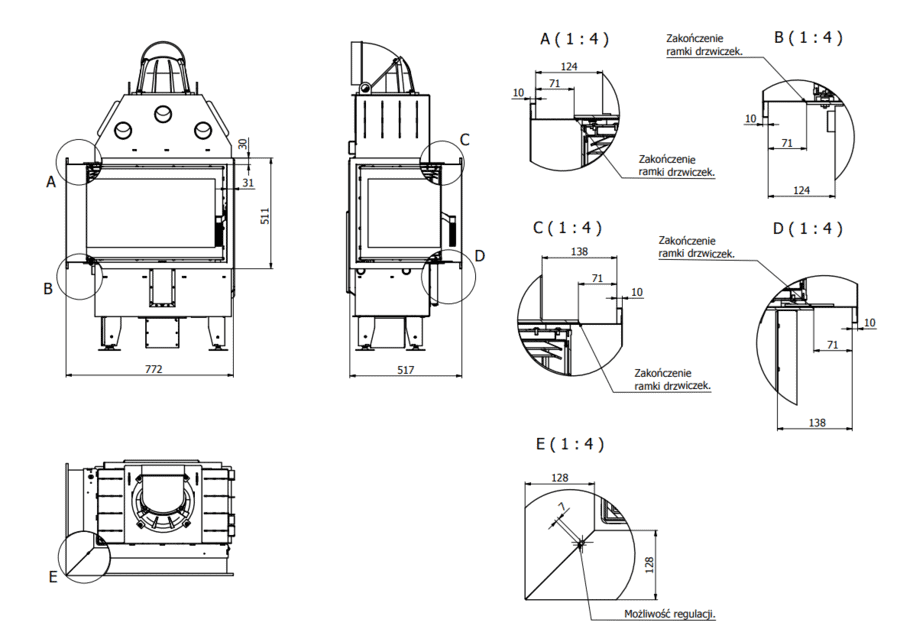 - Židinio kapsulė kampiniu kairės pusės stiklu Defro Home Intra SM BL MINI atidaromomis durelėmis.