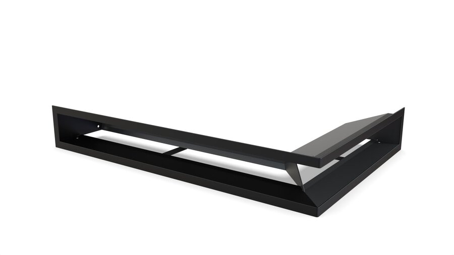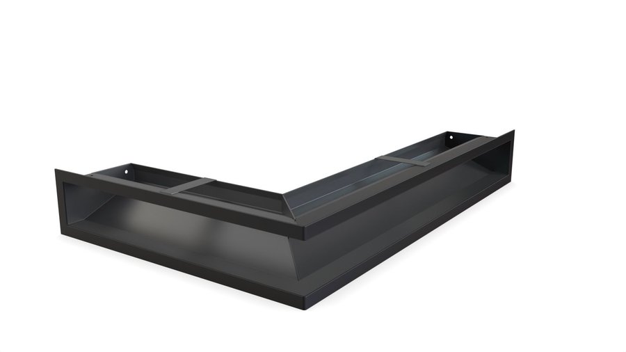 - Juodas metalinis apdailinis rėmelis aplink pakurą