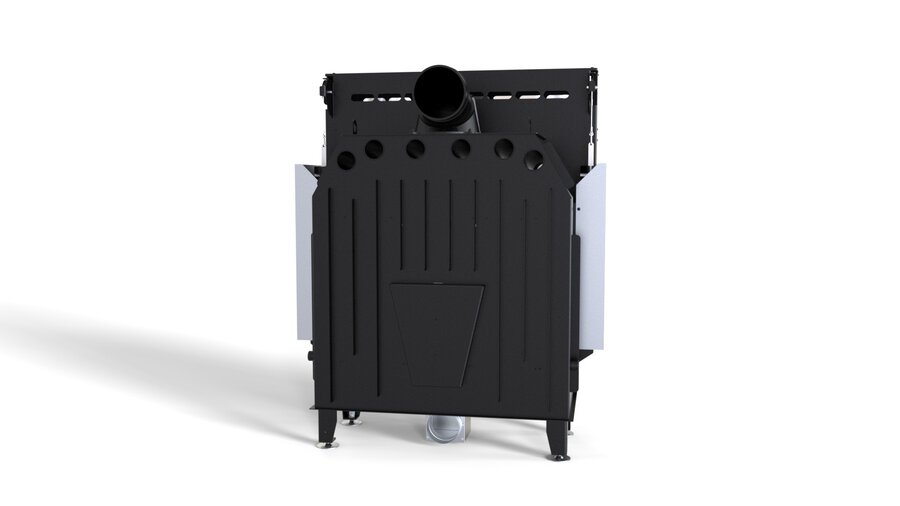 - Juodas metalinis apdailinis rėmelis aplink pakurą