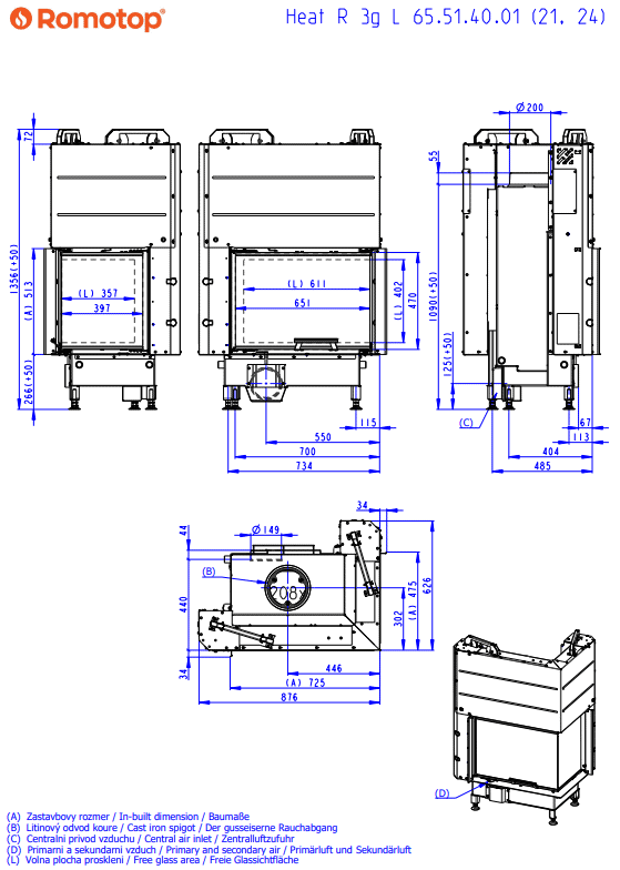 Romotop Heat R 3G L 65.51.40.24 / HR3LG 24 kampinis židinys