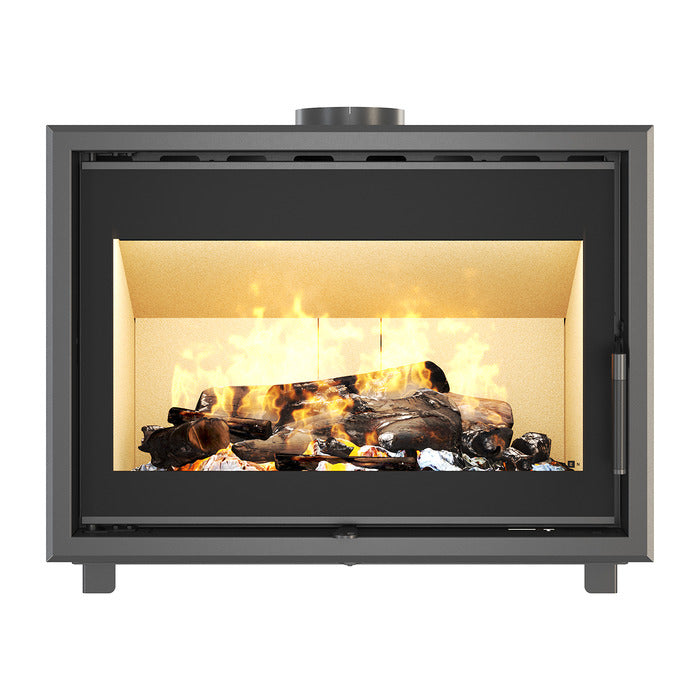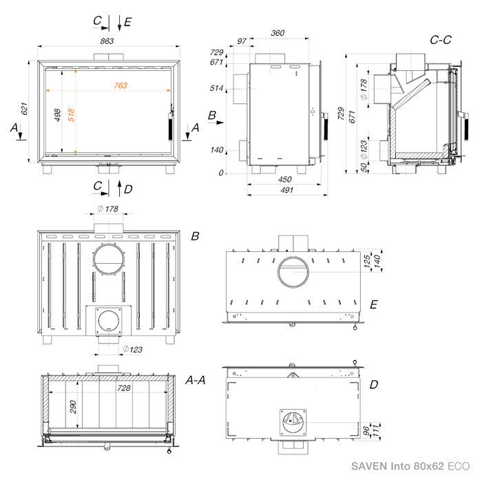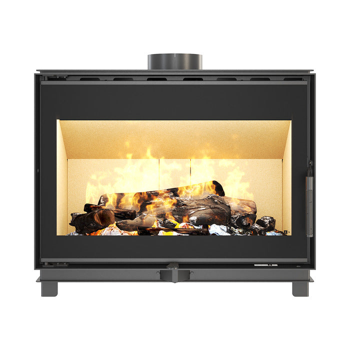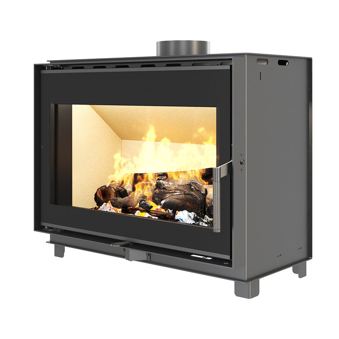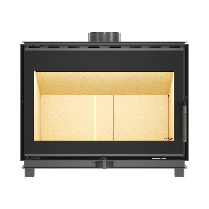 SAVEN INTO 80x62 ECO židinys. Plieninė židinio kasetė tiesiu į šoną atidarimu stiklu. Židinio kapsulė.