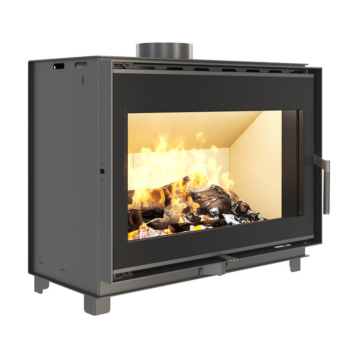 Plieninė židinio kasetė Saven Into 80x62 ECO su tiesiu į šoną atidarimu stiklu.