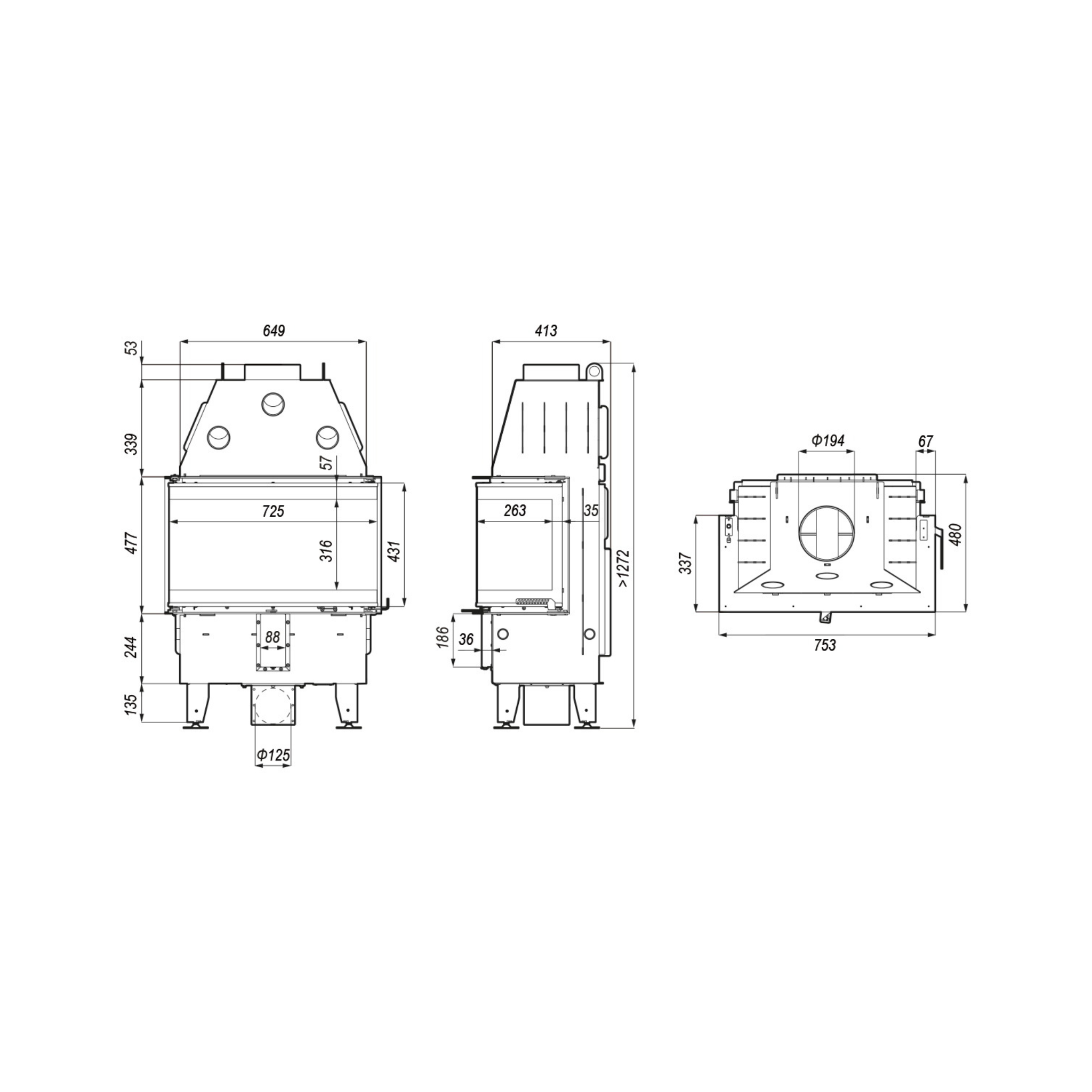 Tripusė židinio kapsulė Defro Home Intra SM C atidaromomis durelėmis.