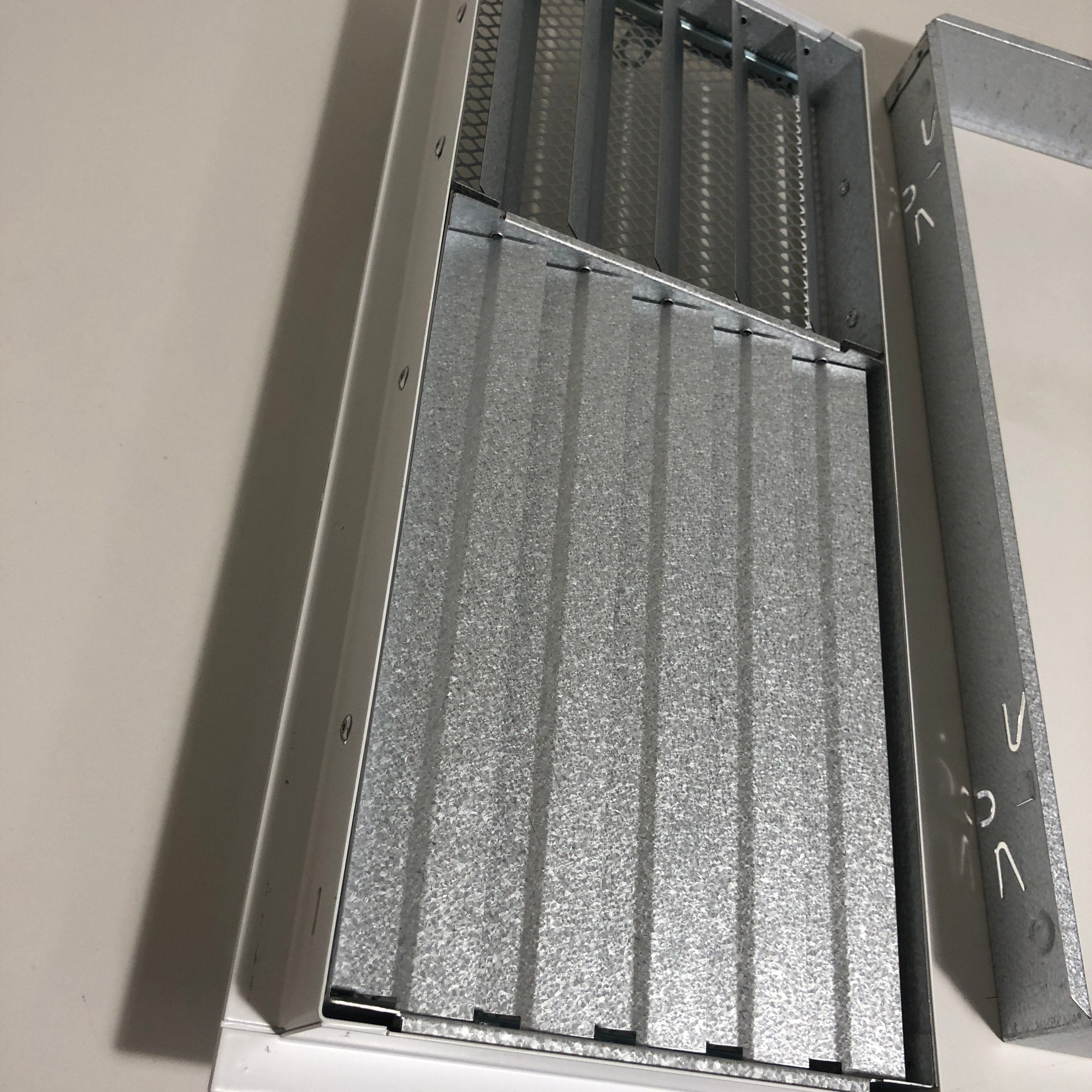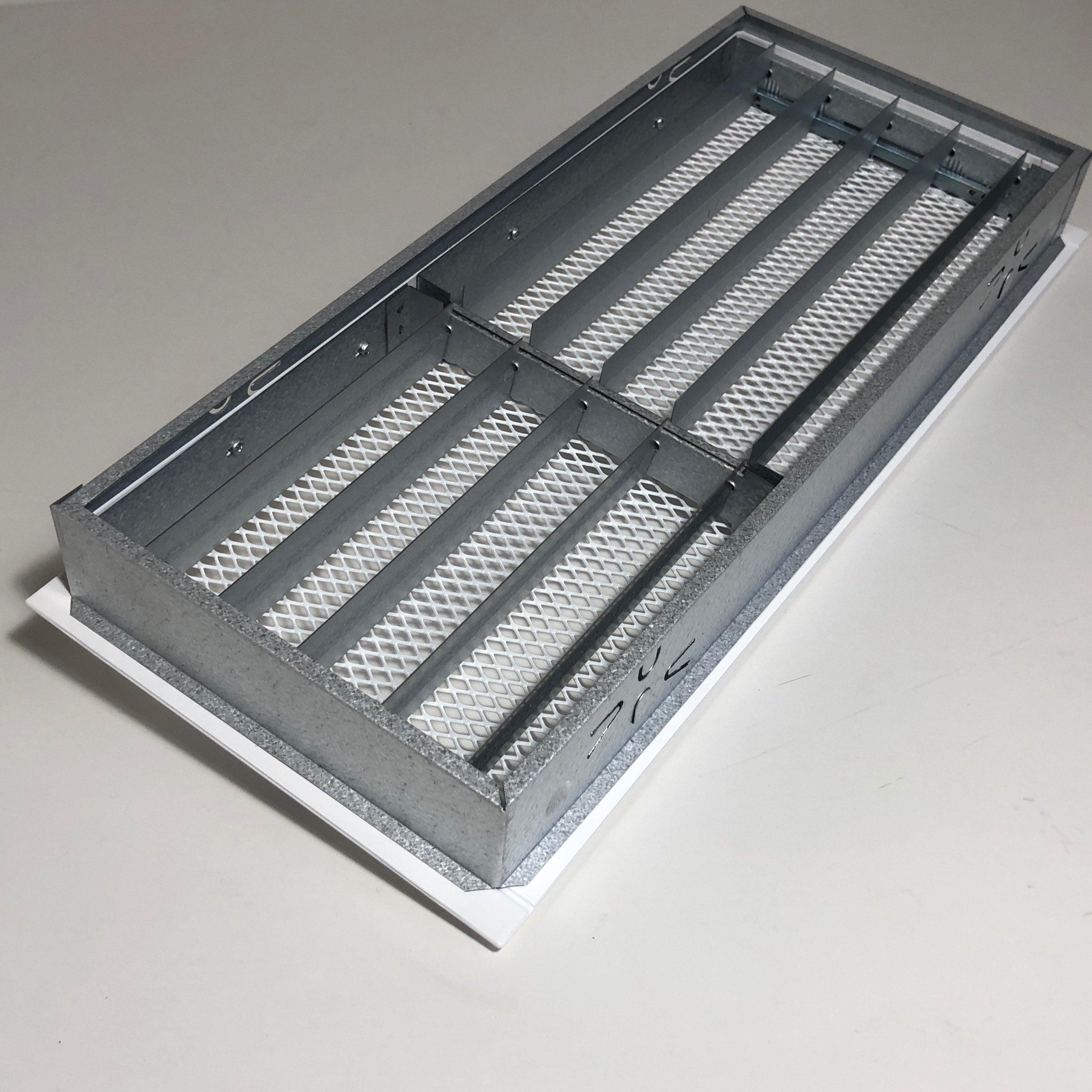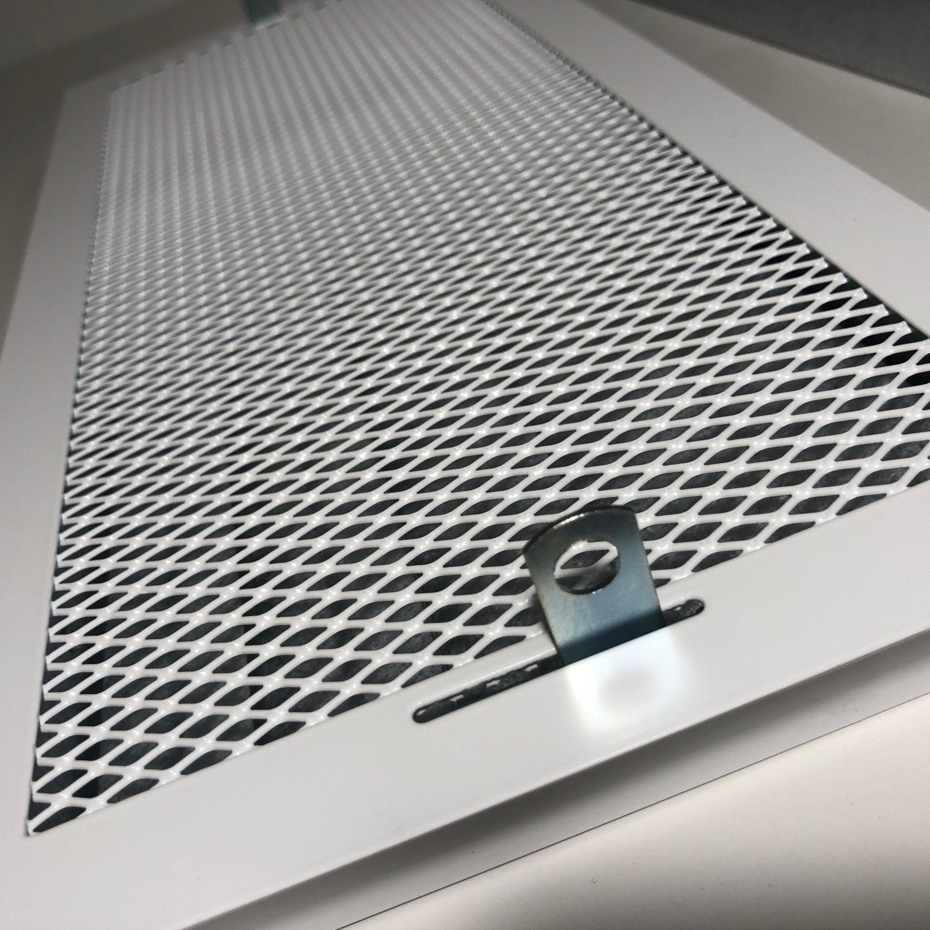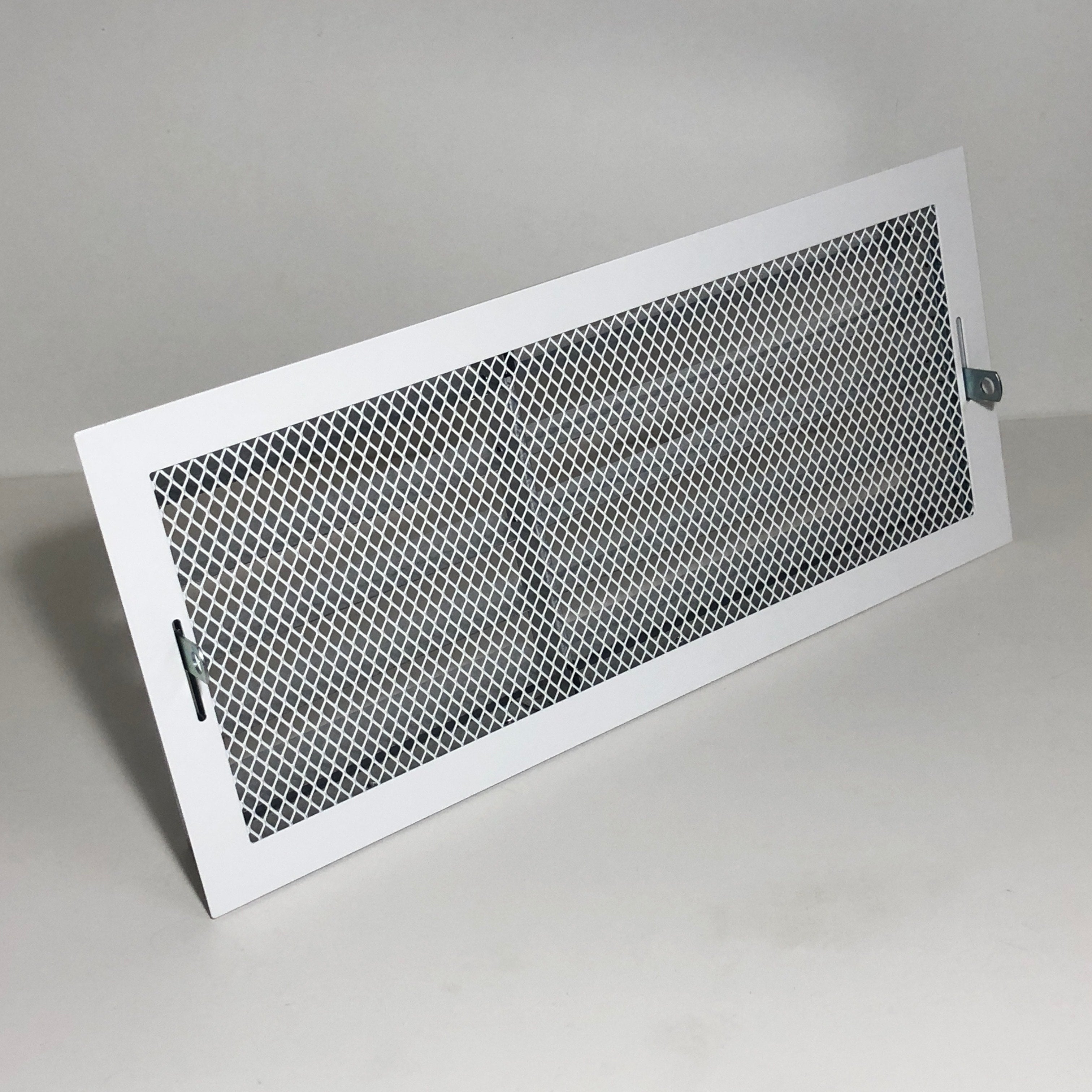 Baltos grotelės su žaliuzėmis židiniams 400 x 180 mm. Tiesios židinio grotelės su žaliuzėmis ir montavimo lizdu