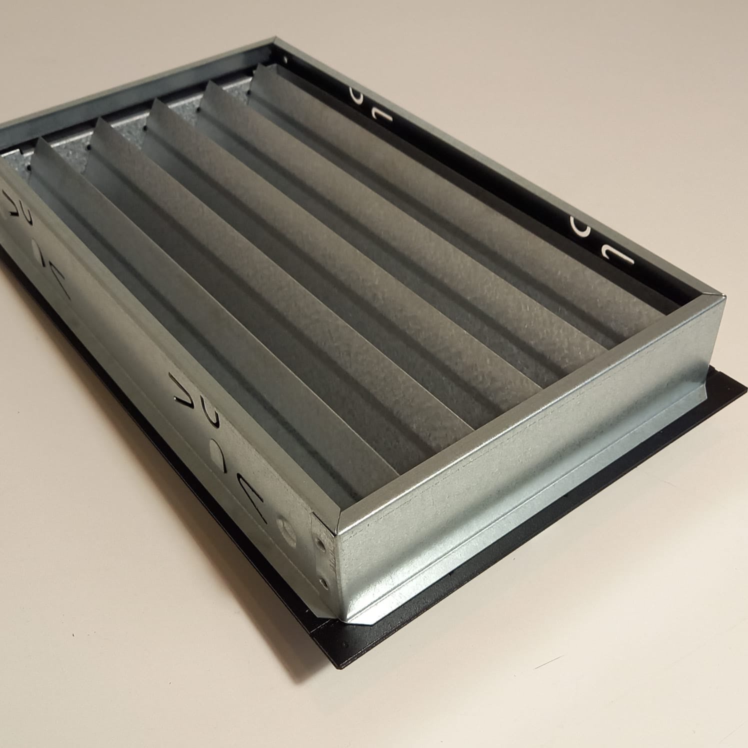 Juodos (smėlis) grotelės su žaliuzėmis židiniams 300 x 150 mm. Tiesios židinio grotelės su žaliuzėmis ir montavimo lizdu